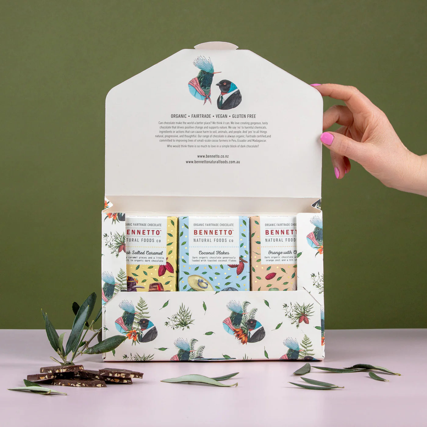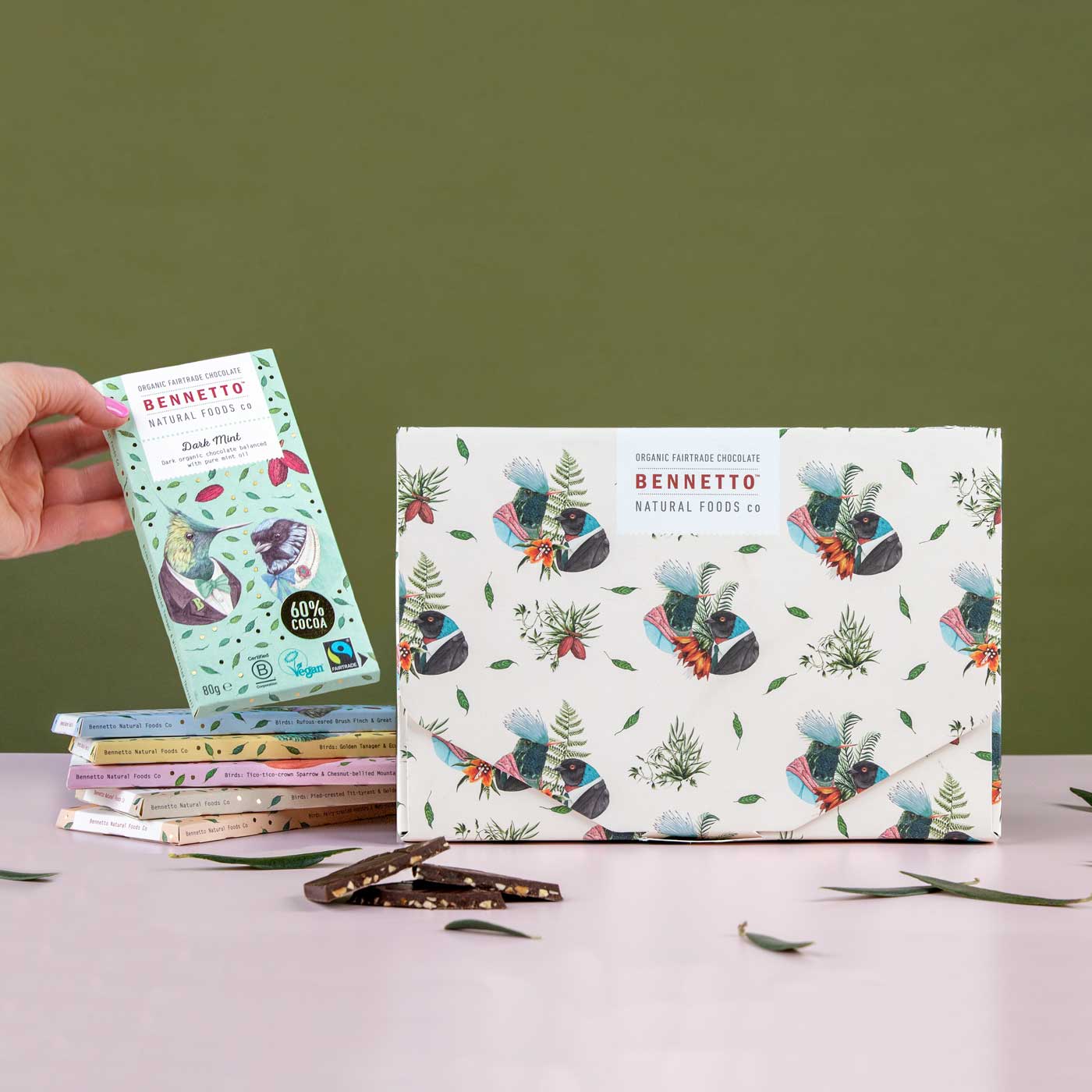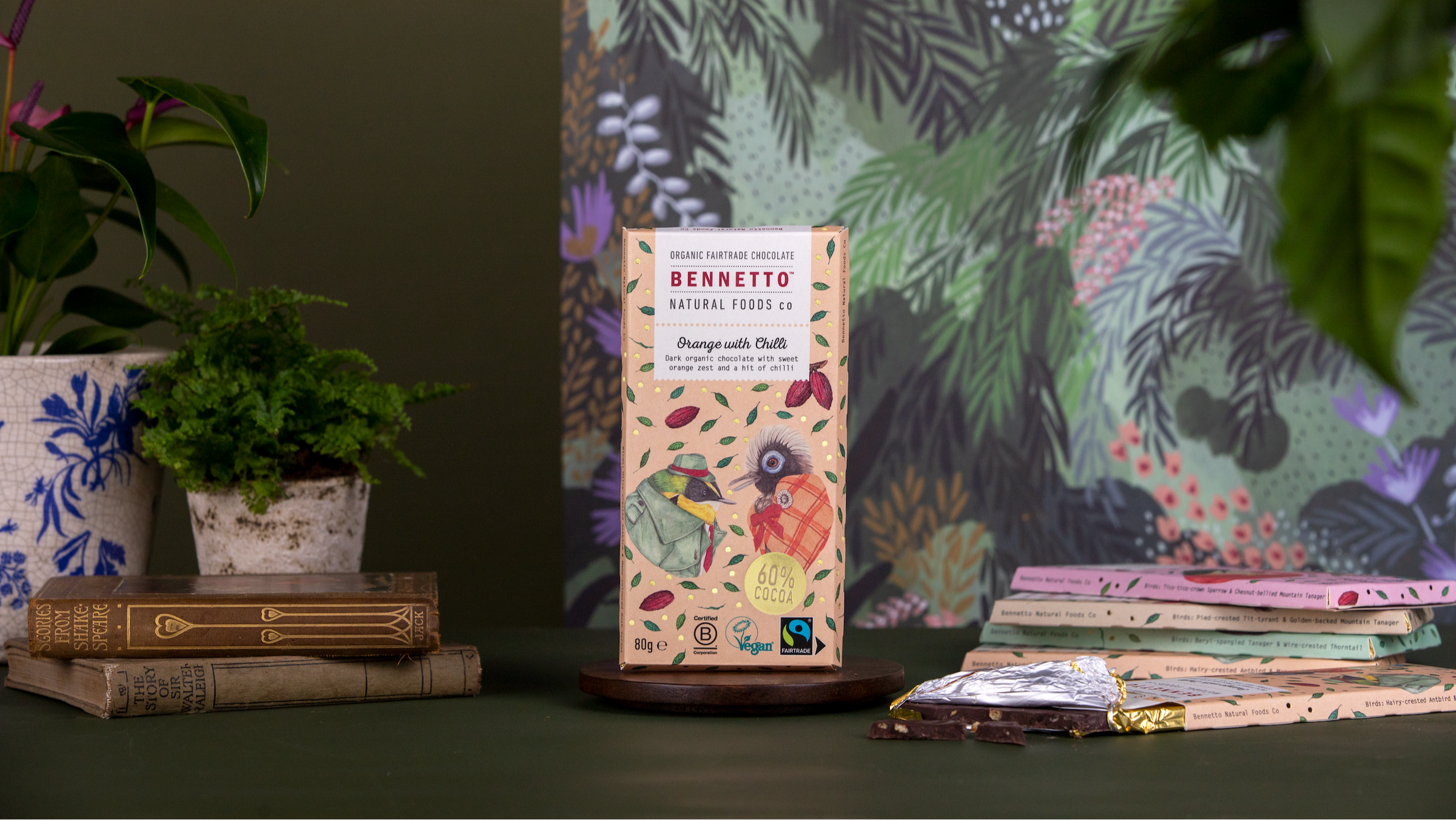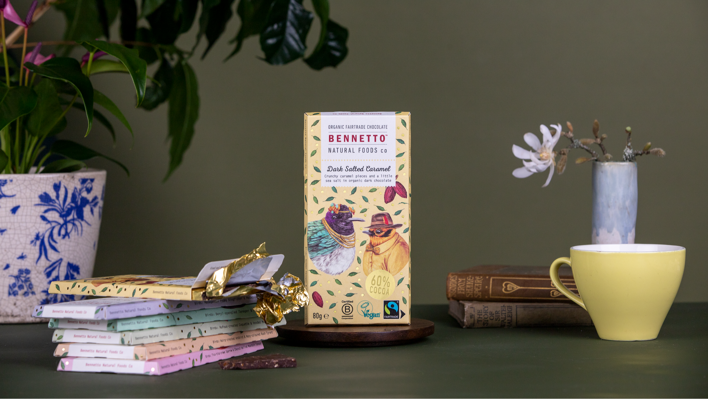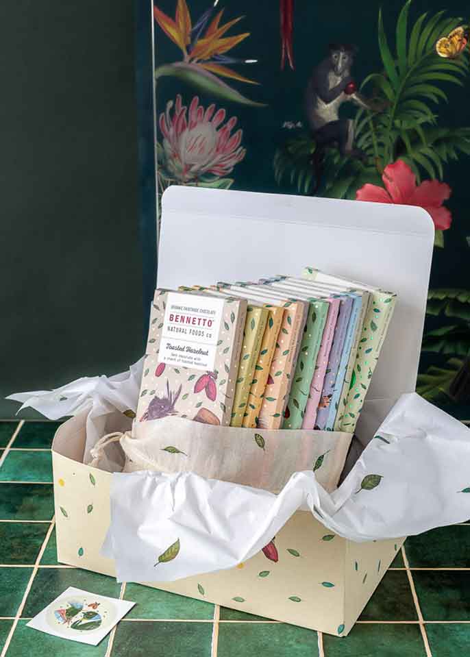 All our chocolate is gluten free, net climate positive, organic, Fairtrade, and B Corp Certified.