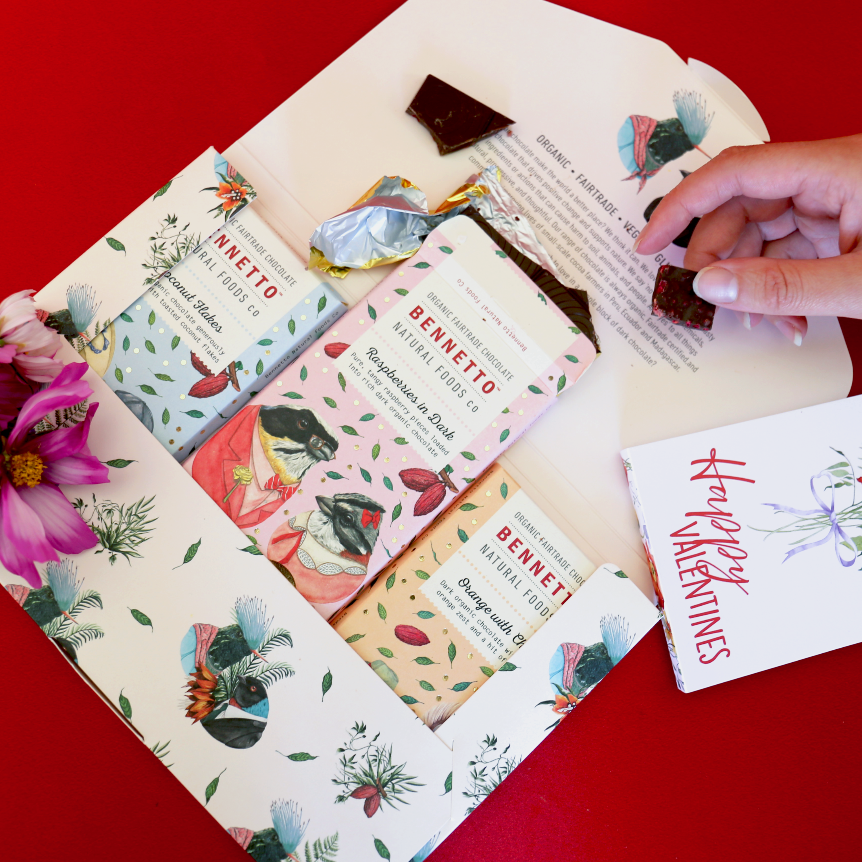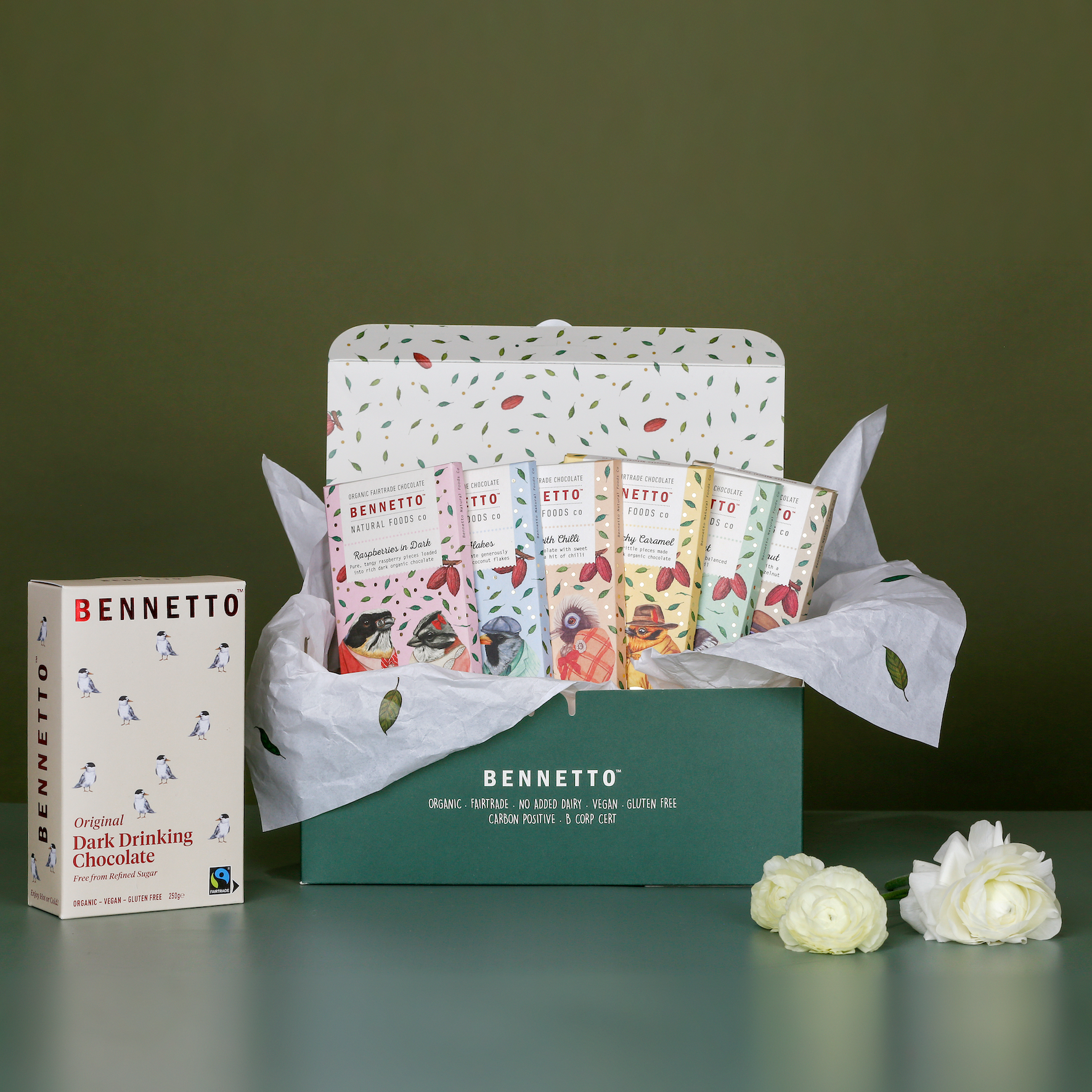All our chocolate is gluten free, net climate positive, organic, Fairtrade, and B Corp Certified.