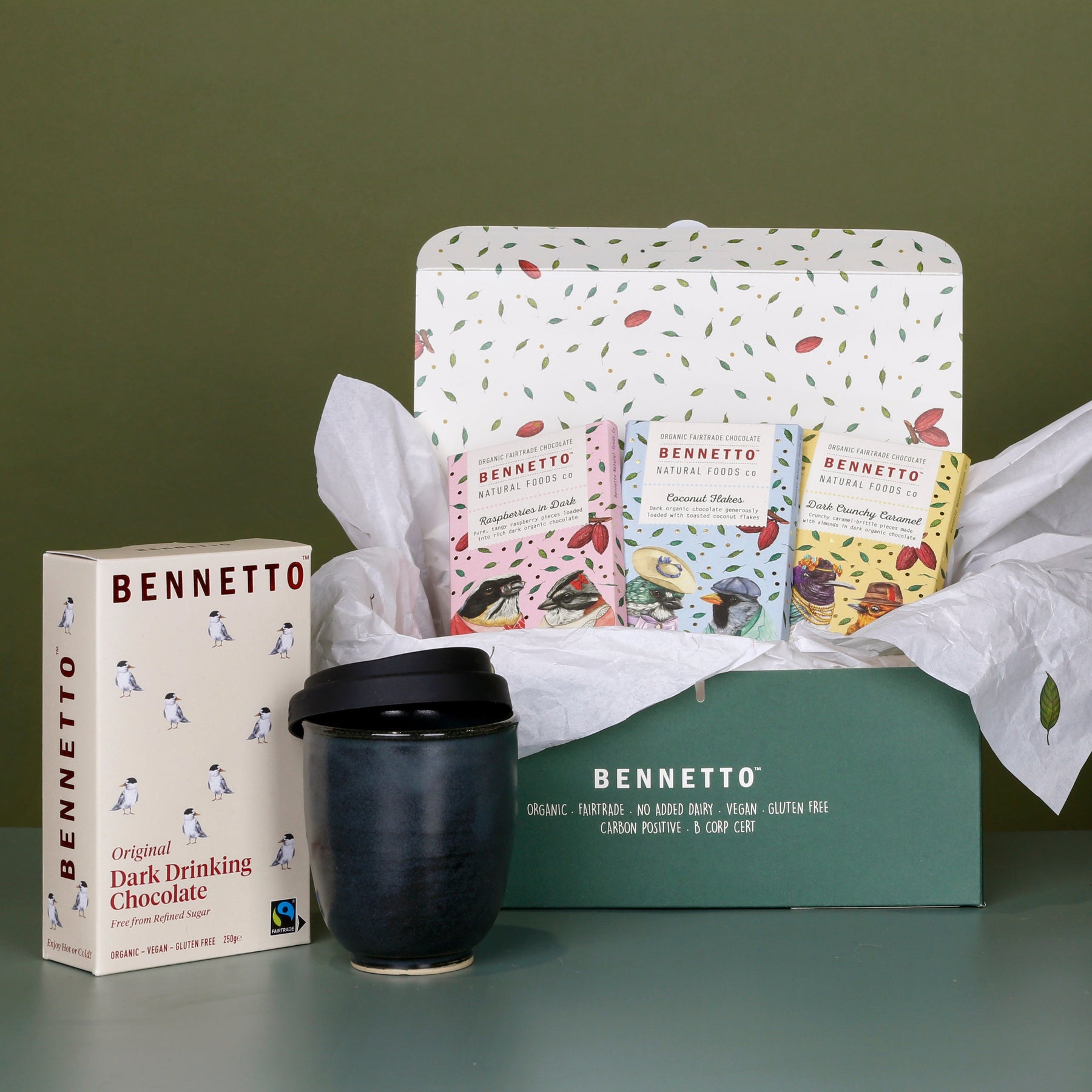 Bring a little extra joy to your spring days. This bundle has everything you need: a one-of-a-kind handcrafted mug, silky drinking chocolate (tastes amazing hot or iced), and three of our favourite bars to snack, share, or gift. Perfect for fresh mornings, catch-ups with friends, or a little “just for me” moment.